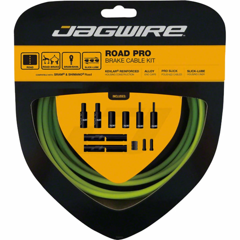 ◌ Le kit de frein de route Jagwire Pro comprend des câbles extérieurs renforcés de Kevlar qui sont sans compression pour des performances fiables et des câbles intérieurs en acier inoxydable pré-étirés et polis pour une action ultra-douce et sans friction.